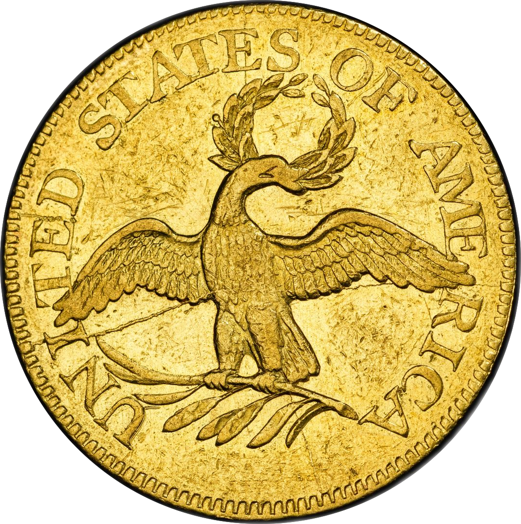 SMALL EAGLE, 15 STARS. CHOICE LUSTROUS SURFACES. LESS THAN 25 SPECIMENS BELIEVE TO EXIST TODAY IN ALL GRADES. JUST 7 COINS GRADED HIGHER AT PCGS WITH THE HIGHEST BEING A MS61.